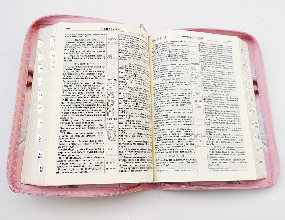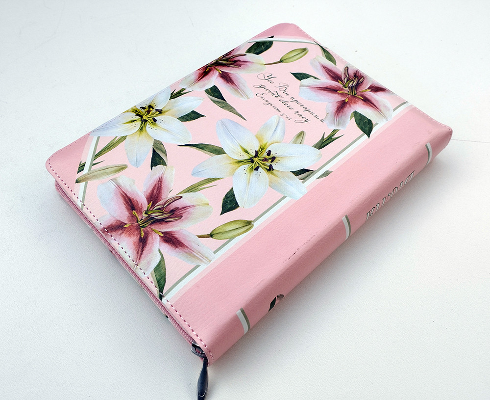 🇺🇦 Біблія середнього формату "Лілії", мяка палітурка, замінник шкіри, індекси, позолота.